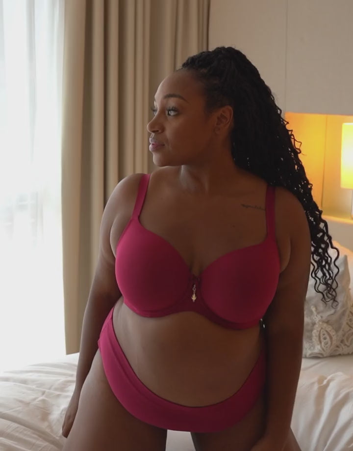 “True” ist der ideale Basic-BH für den komfortablen Alltag! Der T-Shirt-BH in elegantem Bordeaux besticht durch sein klassisches Design und ist dank der nahtlosen Cups nahezu unsichtbar unter enger Kleidung.