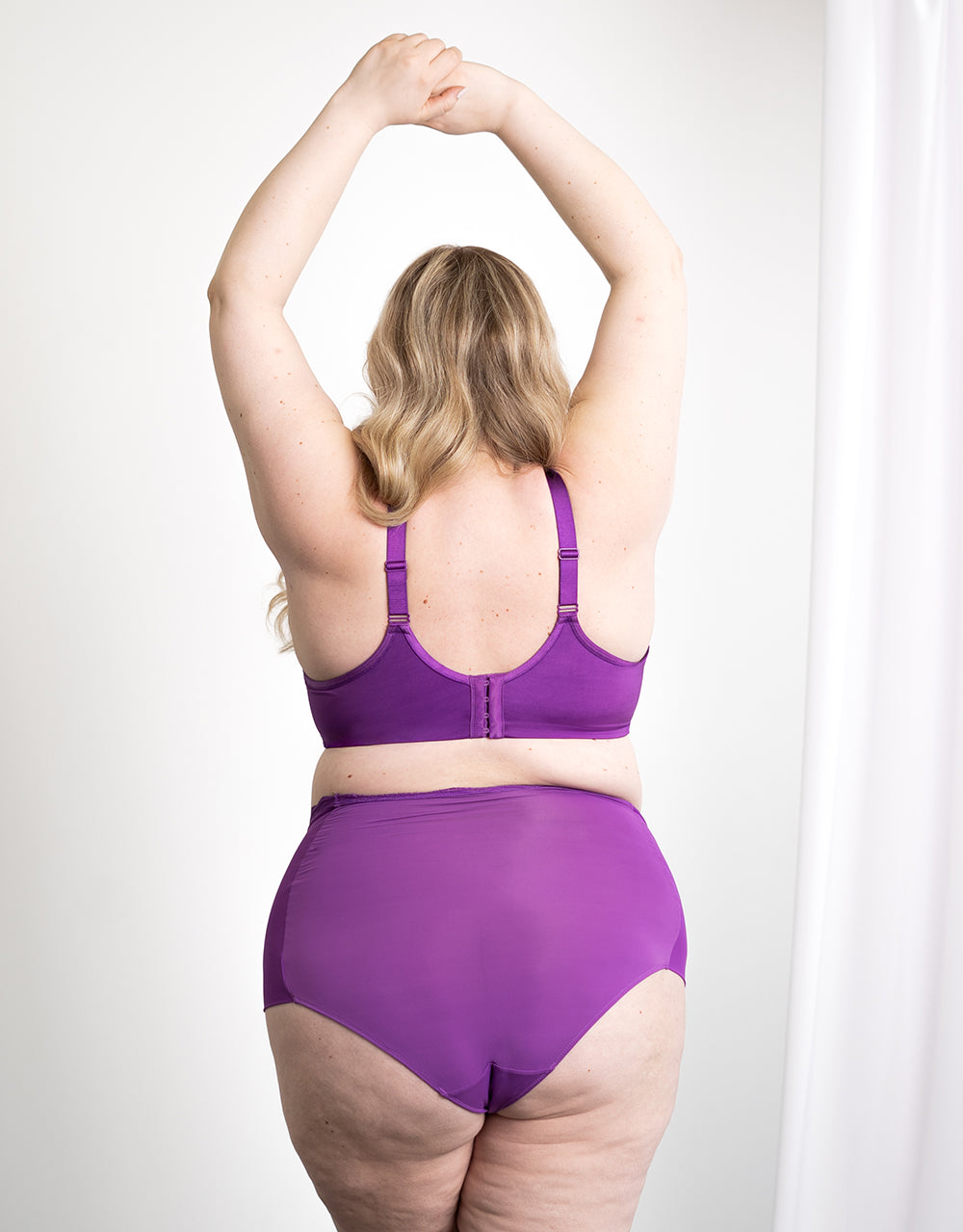 Die lila Farbe ist ein absoluter Hingucker und auch Motsi Mabuse sagt über den BH "Voilà" purple aus ihrer "Colours of Motsi"-Kollektion: "Purple ist meine Signature Colour und damit feiern wir unsere Weiblichkeit. Der BH ist richtig smooth und zeichnet sich auch unter tiefen Ausschnitten nicht ab. Er gibt so eine tolle Shape und hält alles wirklich fest. Meine No. 1!"