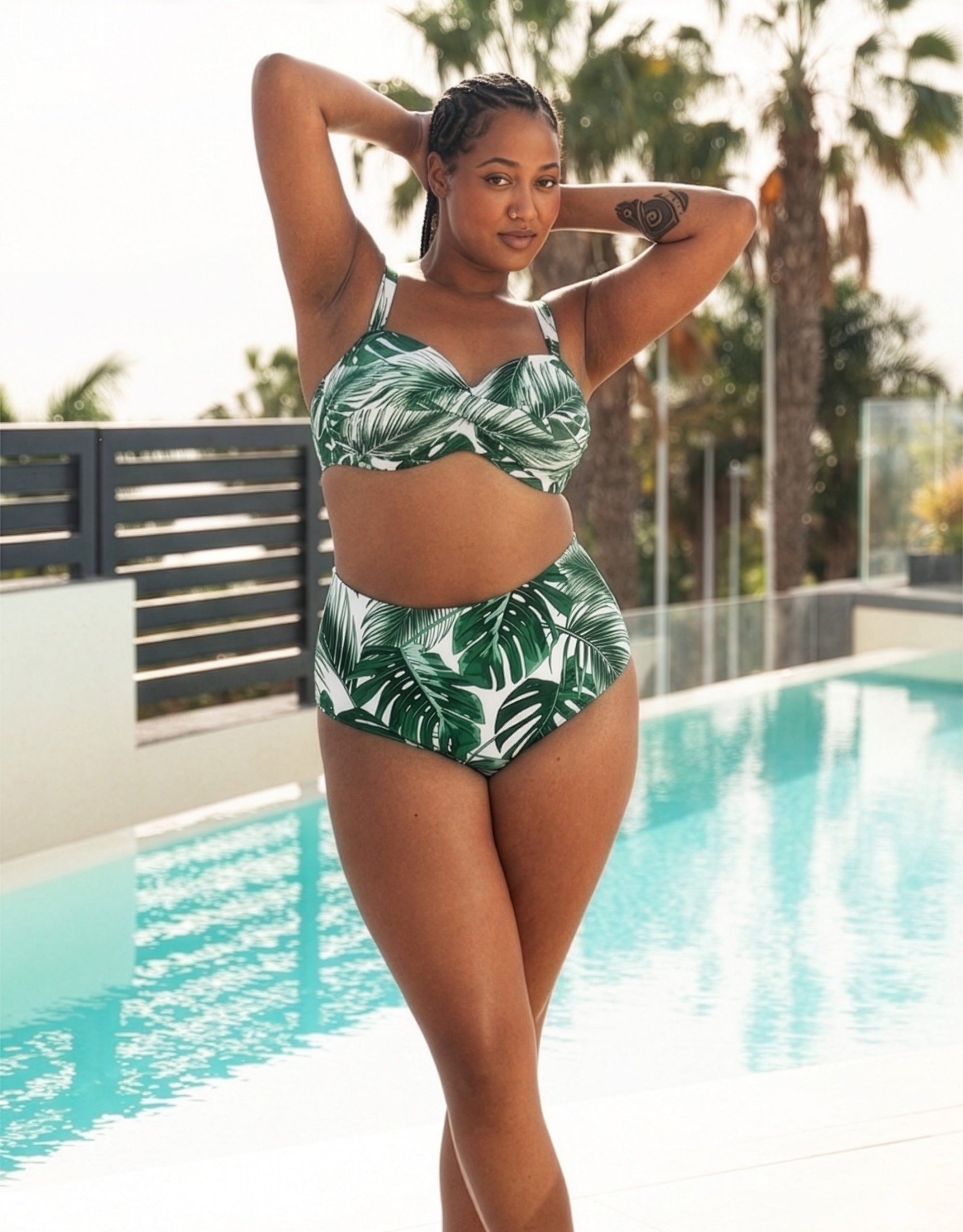 The Fold Over Bikini High Panty Monaco Bali can be worn as a low-rise panty or a high-waisted panty. The tropical leaf print brings a real summer vibe to your wardrobe.