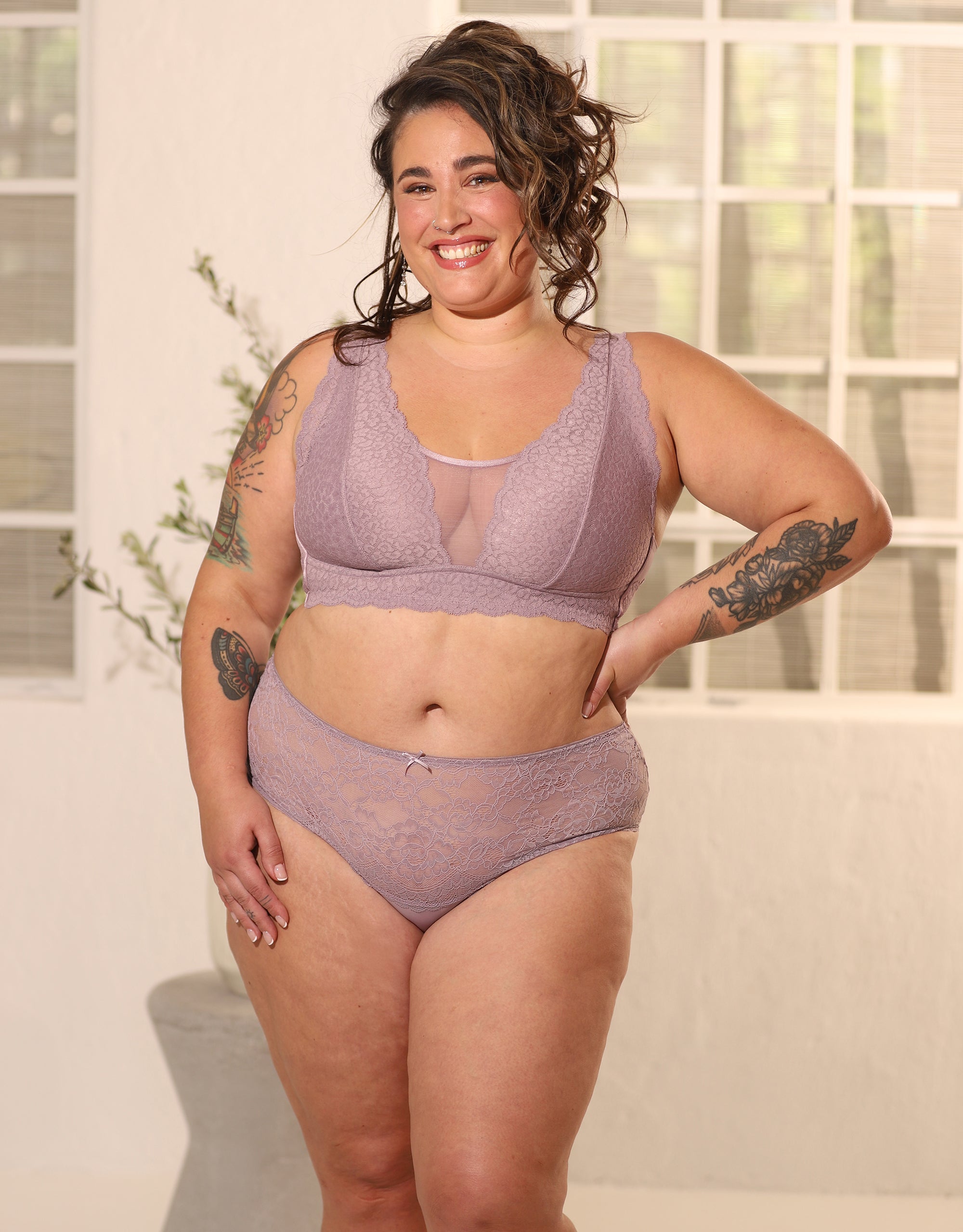 The Lace Basic Violet-Gray High Panty captures the magic of the moment when day slowly fades into night. This elegant colour is reminiscent of the delicate shimmer of dusk – mysterious, calm and full of allure.