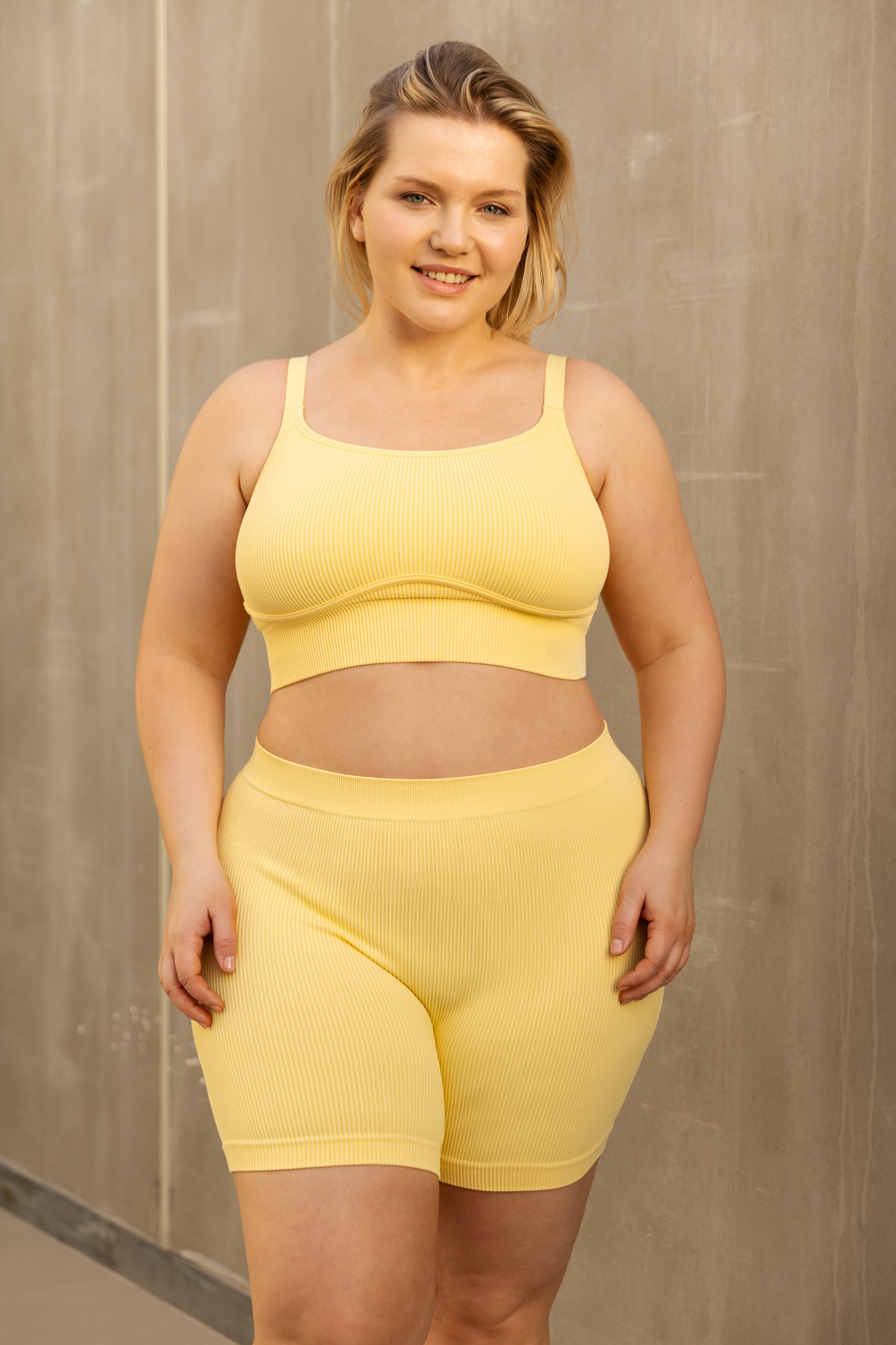 Thanks to their seamless finish, these light yellow shorts fit like a glove and are as light as a feather to wear. The subtle ribbed texture adds a stylish accent.