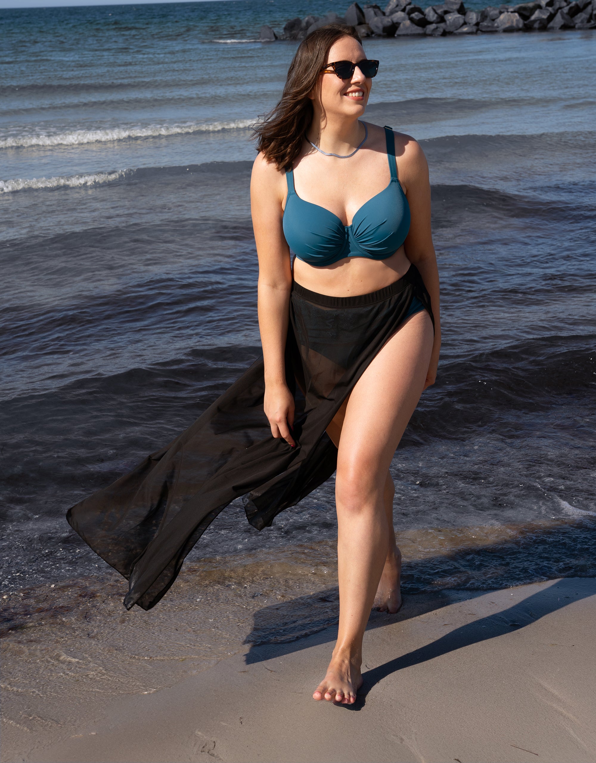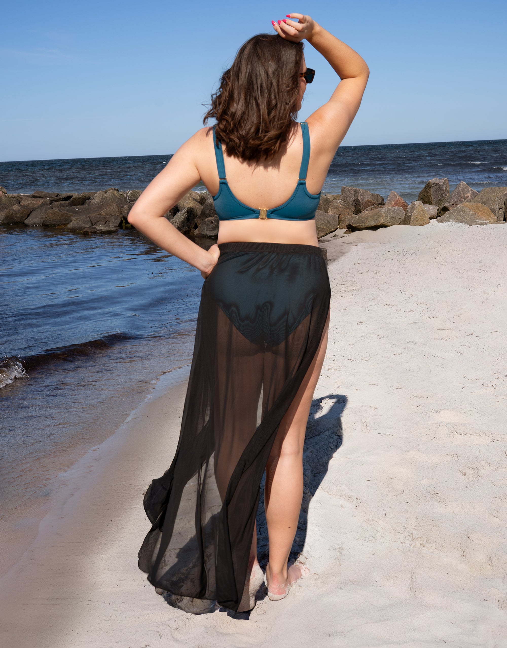 More legroom is not possible. With two high slits at the front, our Skirt Sheer transparent black ensures maximum freedom of movement. Whether worn loose on the hips or slightly higher at the waist, Sheer easily adapts to your figure and style thanks to the elasticated waistband. Whether worn over a bikini, with an oversized shirt or bodysuit – this skirt is easy to style from the beach to the bar.