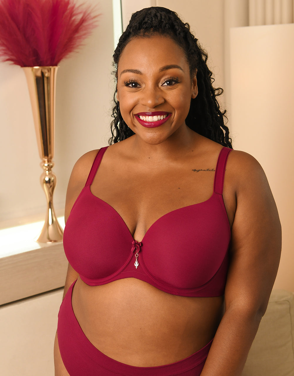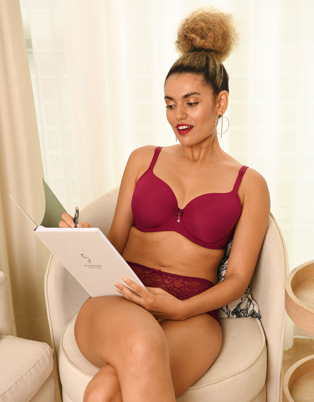 True is the ideal basic bra for comfortable everyday wear! The T-shirt bra in elegant bordeaux impresses with its classic design and is almost invisible under tight clothing thanks to the seamless cups.